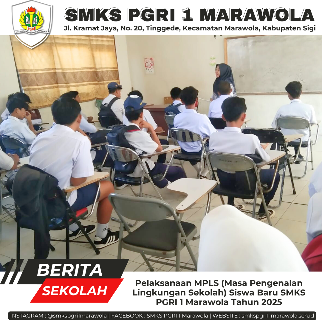 SMKS PGRI 1 Marawola melaksanakan kegiatan Masa Pengenalan Lingkungan Sekolah (MPLS) bagi peserta didik baru tahun ajaran 2025/2026. Kegiatan ini berlangsung selama empat hari, mulai dari tanggal 08 hingga 11 Juli 2025.