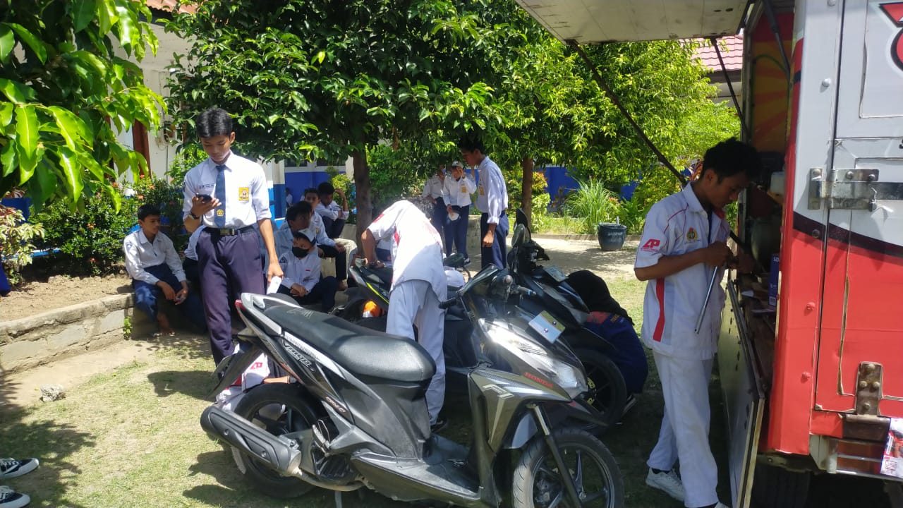 Pada sosialisasi ini, juga dilaksanakan kegiatan service motor gratis bagi guru SMP 1 Sigi guna memperlihatkan kepada siswa/i SMP 1 Sigi keahlian dan kemampuan siswa/i SMKS PGRI 1 Marawola dalam menerapkan program keahlian yang mereka ambil.